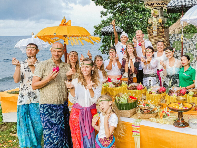 13 dní na Bali s partou skvělých lidí. Spolubytí, spolužití, spolutvoření. Žádný stres, žádné řešení, kam na jídlo, kam na výlet. Prostě přijedete a plně si užijete čas pro sebe s lidmi na stejné vlně. My jsme tu doma a každý, kdo nás tu navštívil měl ten samý pocit = NÁVRAT DOMŮ.