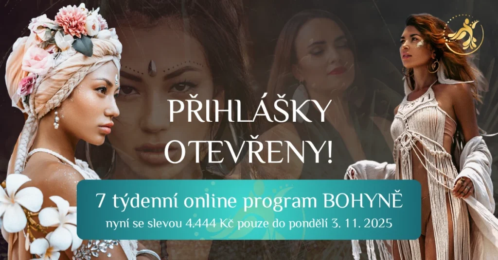 Srdečně zvu do online programu BOHYNĚ. Je pro tebe, pokud cítíš touhu projít vysoce uzdravující a osvobozující cestou do hloubky svého těla, mysli a duše. Je to cesta, jak se radikálně a zároveň v lehkosti vrátit k sobě. K té ženě, kterou jsi tam uvnitř vždycky byla!